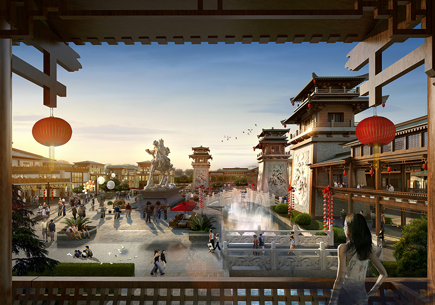 ? ? 文化商業(yè)街的設(shè)計頗具匠心,從入口處開始,至文化商業(yè)街出口處結(jié)束,整個用關(guān)羽輝煌起伏的一生為時間線進行貫穿。如果說整條街區(qū)是關(guān)羽在世生而仁、仁而勇、勇而義、義而忠的再現(xiàn),那么從街區(qū)的出口處就是關(guān)羽侯而王、王而帝、帝而圣、圣而天文化升華的開始。讓體驗者通過關(guān)公精神,體驗現(xiàn)代旅游綜合商業(yè)區(qū),建設(shè)一個集餐飲休閑、旅游度假為一體的傳統(tǒng)古典園林式的商業(yè)綜合體。