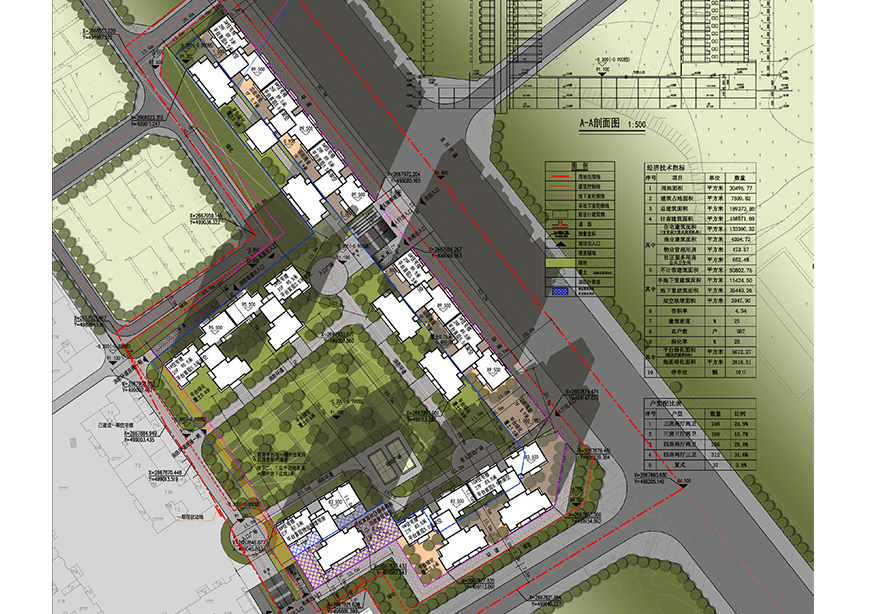 地塊東面與南面緊鄰市政道路,東面為在建龍川大道,西面與北面連接市政道路的交通也非常方便。小區(qū)主要人行出入口放在用地東面中心位置,以及與一期共用入口,主要車行入口放在用地東北面與東側(cè)中心出入口與一期入口共用的用地西南側(cè),嚴(yán)格做到人車分流,增加小區(qū)安全性。